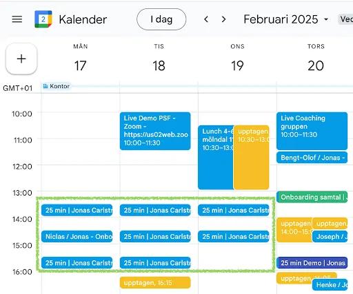 Eller bokade möten (B2B) som kommer in automatiskt via annonseringen.